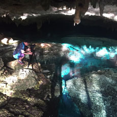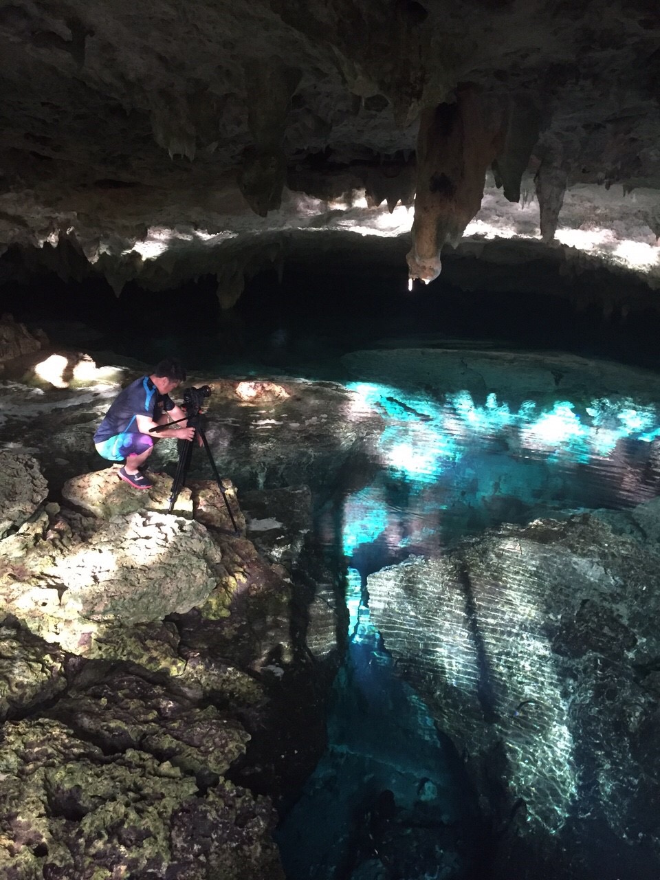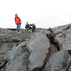 ■舌のように飛び出した岩の先でワッキーさんがホッピングに挑戦