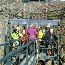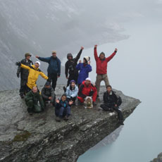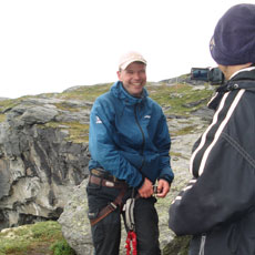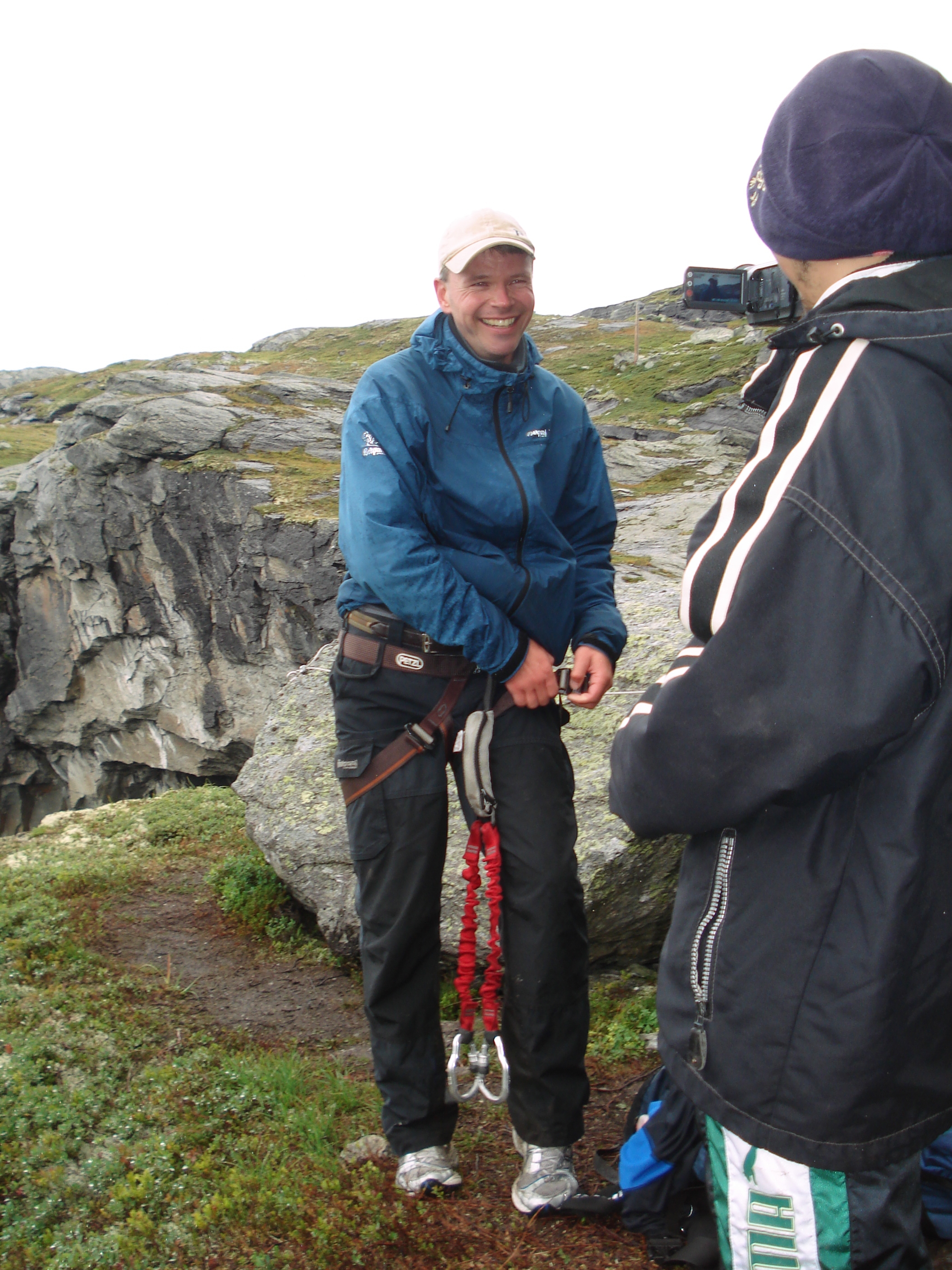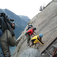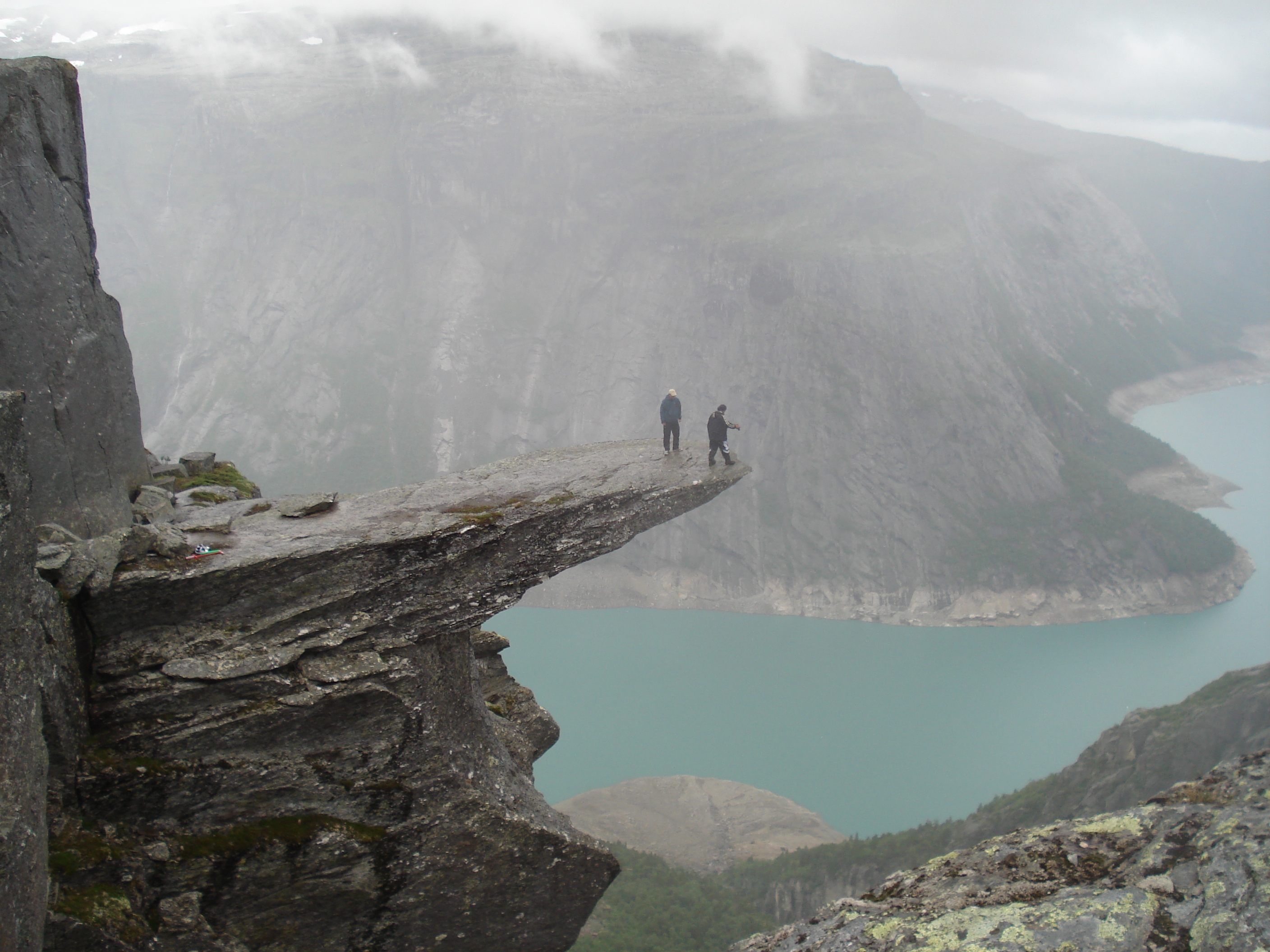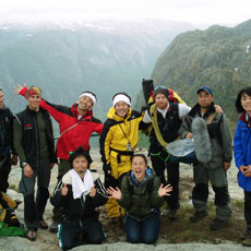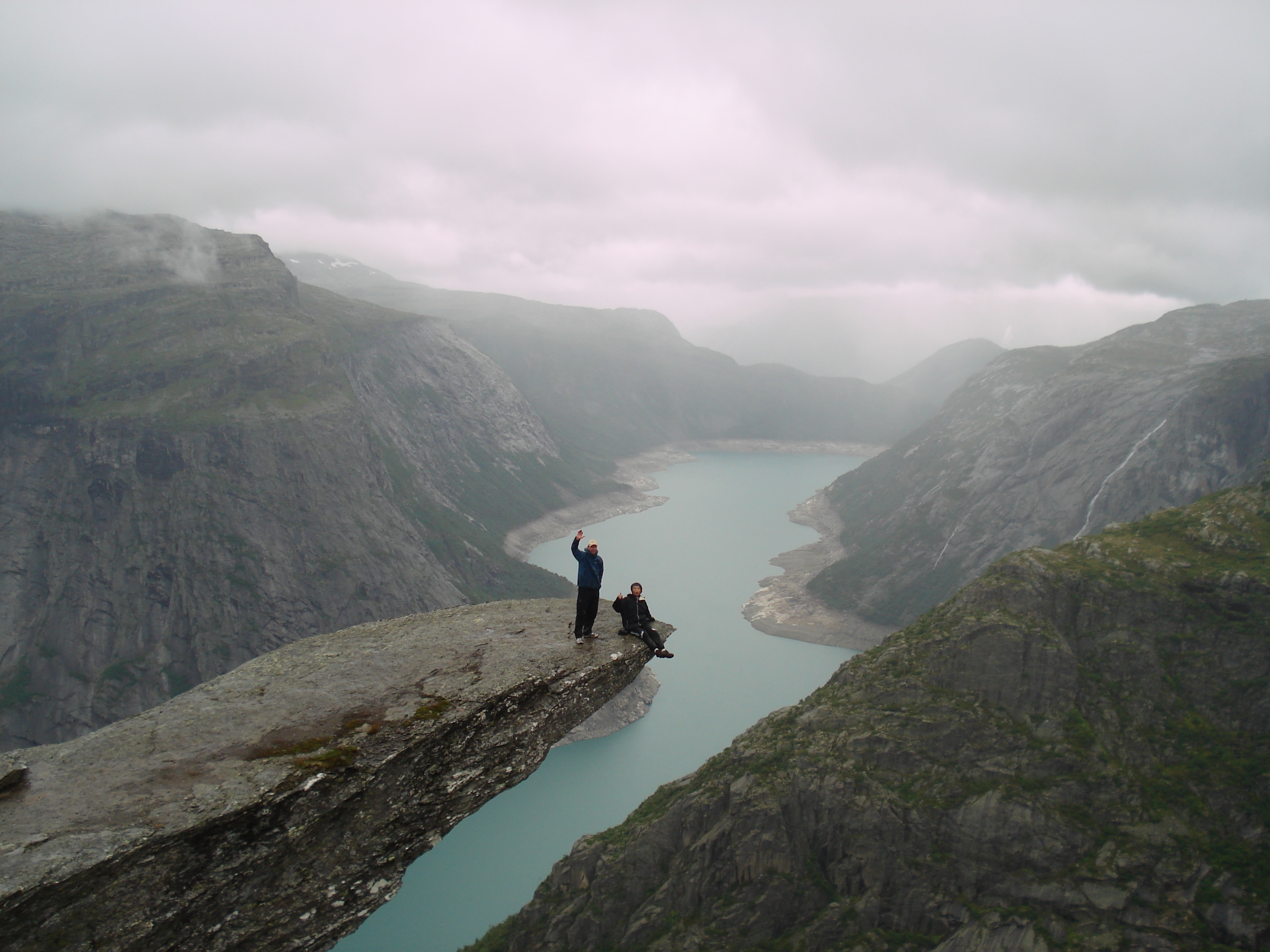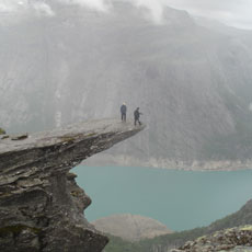 ■フィヨルドにある地上1000mの岩の上でペナルティのワッキーさんがホッピングに挑戦